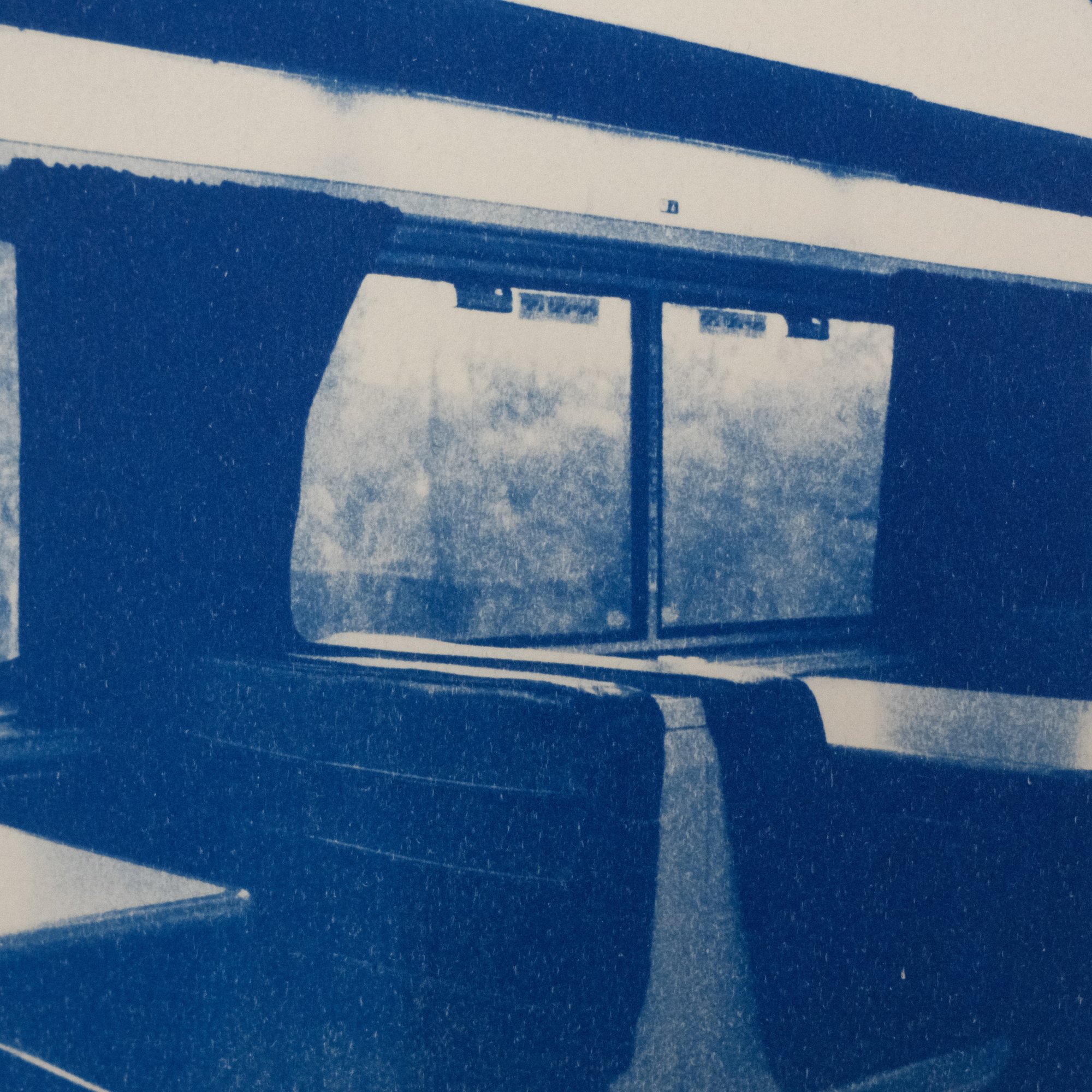 Cyanotype print in a cream colored mat. Total size 10x10in, artwork size 5x5in.