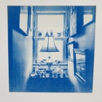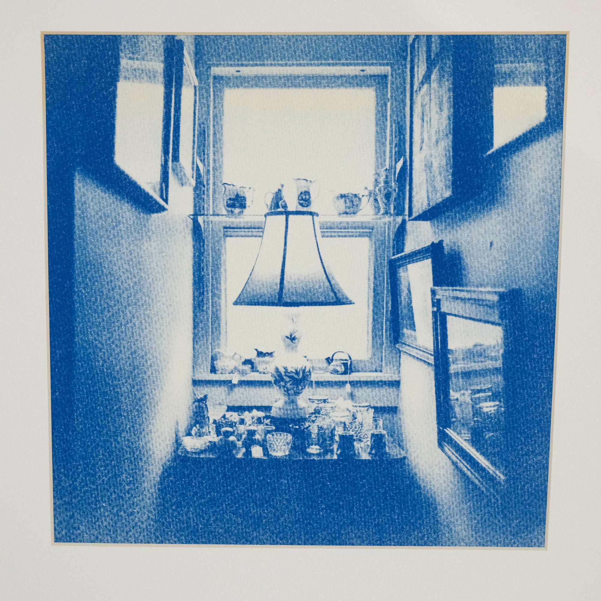 Cyanotype print in a white mat. Total size 10x10in, artwork size 8x8in.