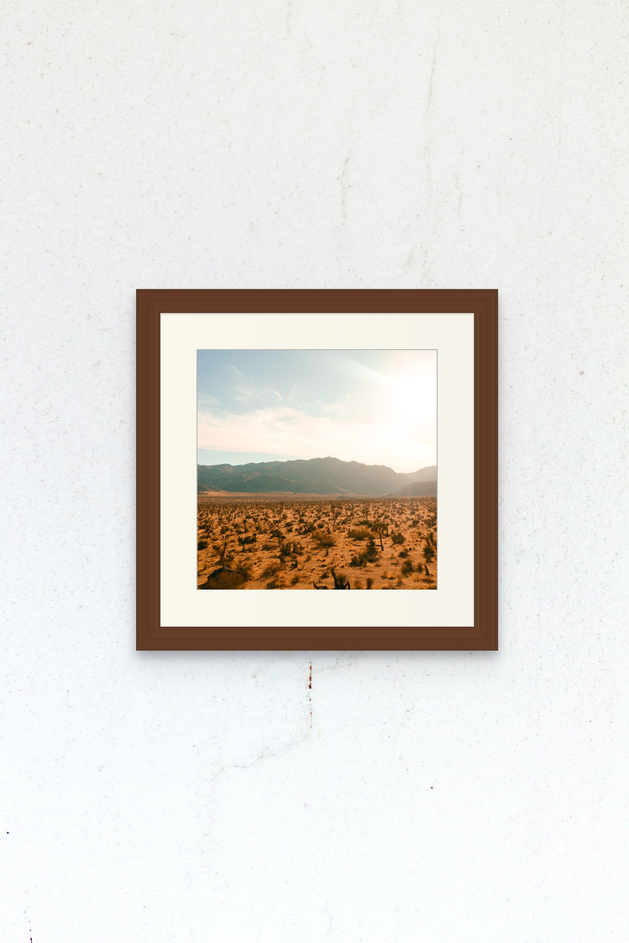 -Image one features a mockup of the 10x10 print size with a 1.5 inch mat and 1 inch frame. Total size is 15x15in